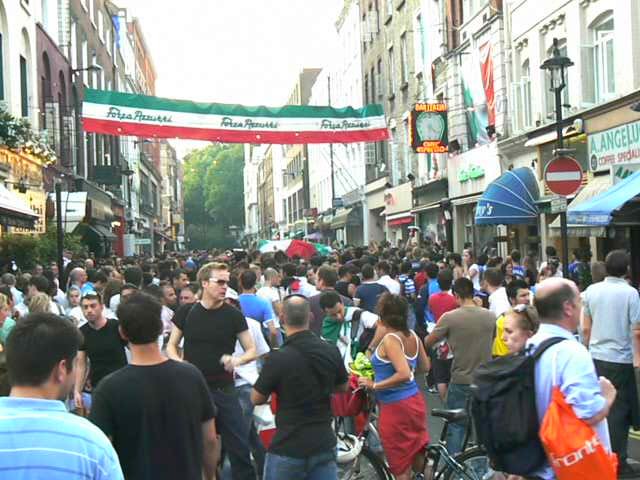 Sarbatoarea italienilor de dupa a fost pe masura, centrul Londrei transformandu-se intr-o mica Roma, cu fantana lui Eros din piata Picadilly Circus pe post de Fontana di Trevi. Au petrecut pana dimineata.