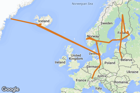 pe drum spre hostel. Unde am apucat să încarc pozele – am reuşit abia după 2 crash-uri cu ecran albastru cauzate de picasa să remediez defecţiunea (trebuia actualizat driverul de wireless). Şi m-am apucat să pun pozele în însemnarea de Tallinn… şi a durat mai mult decât credeam. S-a făcut 9… hai, poate termin… 9 şi zece – gata, destul, plec. Autogara era aproape, dar chiar şi aşa era cam târziu. Când ies afară – plouă. Plouă zdravăn. Aaaah. Repede, scot geaca, o arunc peste mine şi rucsacuri, şi fuga, prin ploaie. Mai pe sub copaci, mai pe lângă clădiri, am ajuns în vreo 5-6 minute. Autocarul, aproape plin. Urc, ud şi obosit, adrenalinizat, pe locul meu şi cel de alături – 2 japoneze mă priveau cu ochii cât de mari puteau să-i deschidă, cu un zâmbet naiv îngheţat de panică. Zic – aveţi locul ăsta? (nr. 13). Îmi zâmbesc tăcut. Aveţi locul ăsta? Acelaşi zâmbet tăcut, parcă însoţit de un icnet abia perceptibil. O doamnă de alături, tipologie “vecină care rezolvă probleme”, îmi zice ceva în lituaniană. Aş fi vrut mult să-i răspund în aceeaşi limbă (azi am încropit nişte “aciu”, “prasom” etc.), dar tot ce mi-a venit în cap a fost “niet poniumai”. Pa ruski, adică, dacă tot vorbiţi toţi ruseşte, mămăliga voastră. M-am întors la cele 2, care mă priveau în continuare speriate, şi le-am făcut uşor nerăbdător semn spre numărul 13 al locului. Doamna mi-a făcut semn să stau în spate, lângă un individ, la culoar. I-am zis – vreau la fereastră, pe locul meu. Cu durere în sufletul lor de samurai, niponele s-au ridicat murmurând pe niponă, probabil ceva la limita politeţii tradiţionale, şi s-au dus în spate, unde mai erau locuri libere. Doamna a părut nemulţumită, dar treaba ei. Nu se compară călătoritul la geam cu la culoar, în autocar. Plus că încă nu s-a aşezat nimeni lângă mine, după prima oprire, de am putut să scriu până acum. Nu se compară cu în ce a vrut să mă bage. Ea, desigur, binevoitoare faţă de vizitatoarele de pe altă planetă, dar să mă scuze, vizitatoarele au găsit loc în spate, şi şi eu snt de pe altă planetă. Înrudită, da’ orişicât.