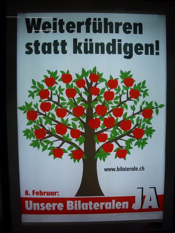Din fericire, SVP sunt doar o parte a spectrului. În aceeaşi gară am văzut şi afişul de mai jos, în care se încurajează păstrarea acordurilor bilaterale (dacă nu se ratifică pentru ro & bul, se anulează automat toate celelalte!). A propos de ce ziceam mai sus despre mesaje senzationale, asta prin comparatie e cam slab, plictisitor, nememorabil: