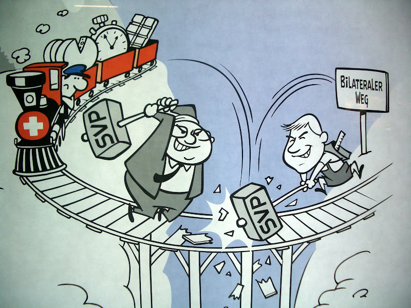 aflat la guvernare, condus de un anume Blocher, un fel de Vadim al confederaţiei helvete, care după un moment de glorie e acum şi el cam în dizgraţie, dar tot încearcă să muşte.
