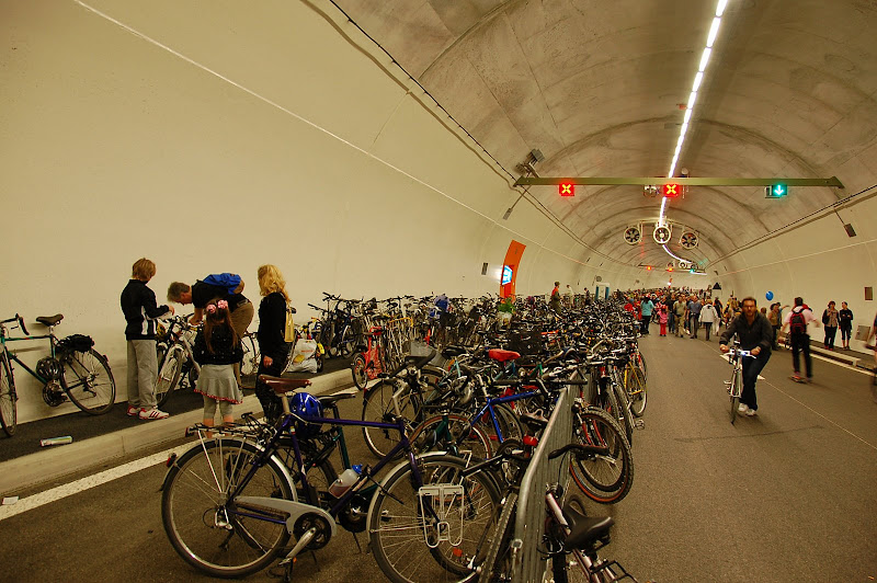 Ajunşi înapoi la tunel, am aruncat o privire înăuntru – una din părţi era închisă pentru maşini şi deschisă pentru pietoni şi, mai ales, biciclişti: