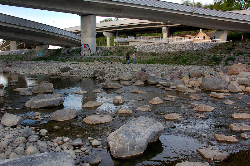 Black Mamba m-a dus până la Sihl City, de unde am luat un autobuz pus la dispoziţie moka de poştă, şi care m-a trecut tunelu’. Unde m-am întâlnit cu C&L, care tocmai ziceau că intrarea în „perimetru” e 15 parale, nu pare să merite. Alternativa propusă a fost înconjurarea locului, pe o cărare unde vedeam că se plimbă oameni, pe sus. zis şi făcut, şi s-a dovedit o alegere inspirată, căci astfel am avut o privire de ansamblu.
