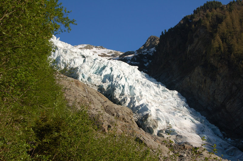 şi nu după mult timp am ajuns la Chamonix. Repede cazarea, şi – ce facem? E 6 dupămasa, încă lumină… „se poate ajunge la gheţarul care se vede pe deal?” întrebăm la recepţie. „Da. mergeţi cu maşina până la cabană, după care e puţin pe jos.”