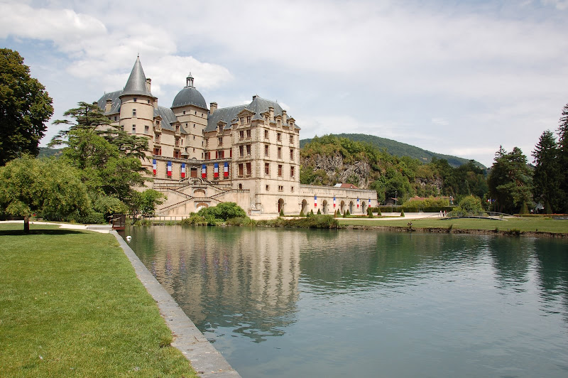 După care am intrat în incinta şatoului, şi am căscat gura: palatul şi grădinile alcătuiesc un complex feeric, mai ales în contrast cu orăşelul altfel destul de banal. Castelul beneficiază de lac pentru oglindire,