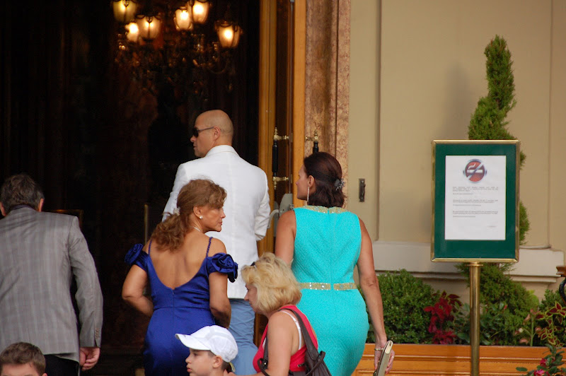 carele abia după câteva momente de studiu am înţeles că aşteptau să vină bogătanii, să lase maşinile lucsoase pe seama valeţilor şi să intre la cazinou să joace. Prezenţa şi activitatea atârnacilor de gard mi s-a părut penibilă, dar am stat şi eu puţin cu ei, şi făcând pe paparazzul am făcut această poză acestor 2 doamne care intrau la joc.