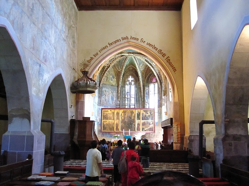 Biserica e renovată parţial şi înăuntru, nu ştiu ce o să facă cu fresca din stânga, una din cele mai bine păstrate din Transilvania.