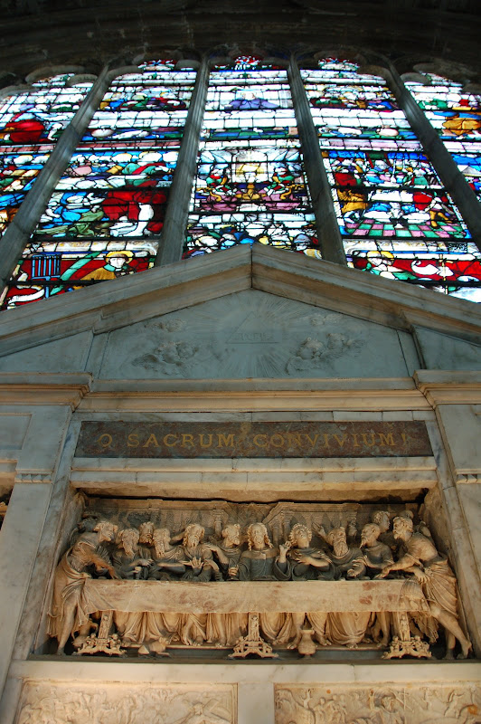 o şocantă minunăţie, în biserica altfel austeră – mă rog, în afară de vitralii