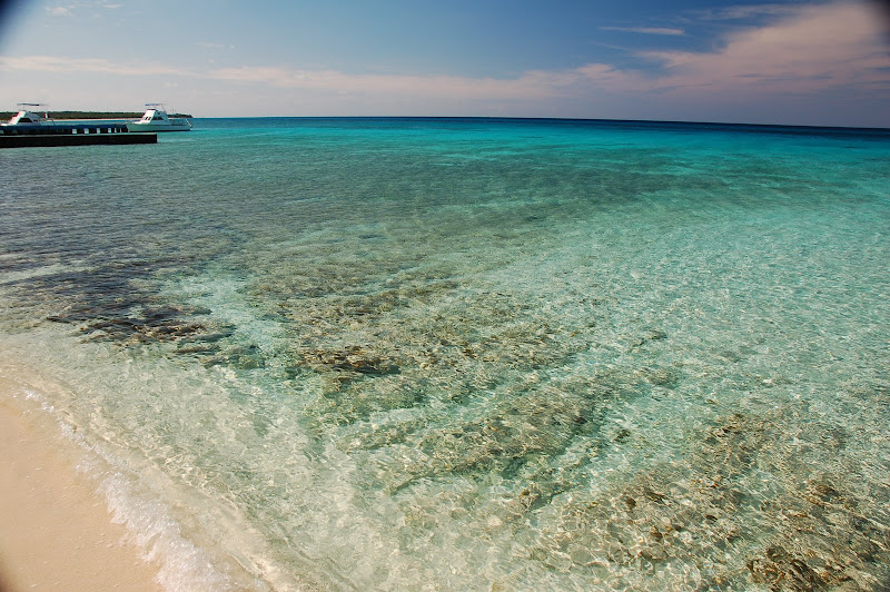 dar dacă erai un pic atent la început, dup-aia urma nisip, şi era frumos. Am stat o bucată bună de vreme în apă, savurând momentul, turcoazul, albul nisipului. Nu cred c-am făcut vreodată baie într-o apă mai limpede. Atât de limpede încât nu vedeai… nimic, în afară de nisipul foarte alb de pe fund.