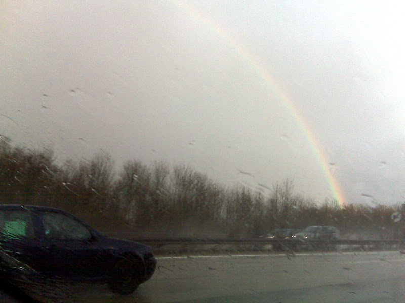La întoarcere m-a prins o ploaie zdravănă zdravănă, din aia de nu vezi mai nimic, DAR – chiar şi aia a meritat, pentru că la un moment dat a ieşit soarele şi am văzut cel mai spectaculos curcubeu din carieră – nu numai că a fost pentru prima dată când era „complet”, deci vedeam tot arcul,