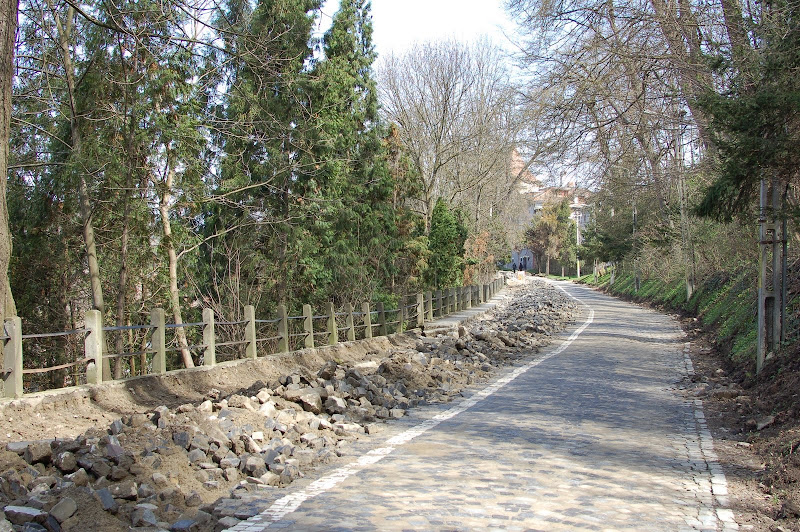 Sau drumuri în lucru (semnalasem că au pavat Cetatea. Ei bine, gâlceava felinarului cu reflectorul s-a rezolvat remiză: edilii s-au răzgândit şi au răscolit-o din nou. A ţ-şpea oară. În parte din cauză de alunecări de teren (ca mai jos), în parte pentru că… pavaseră prost).