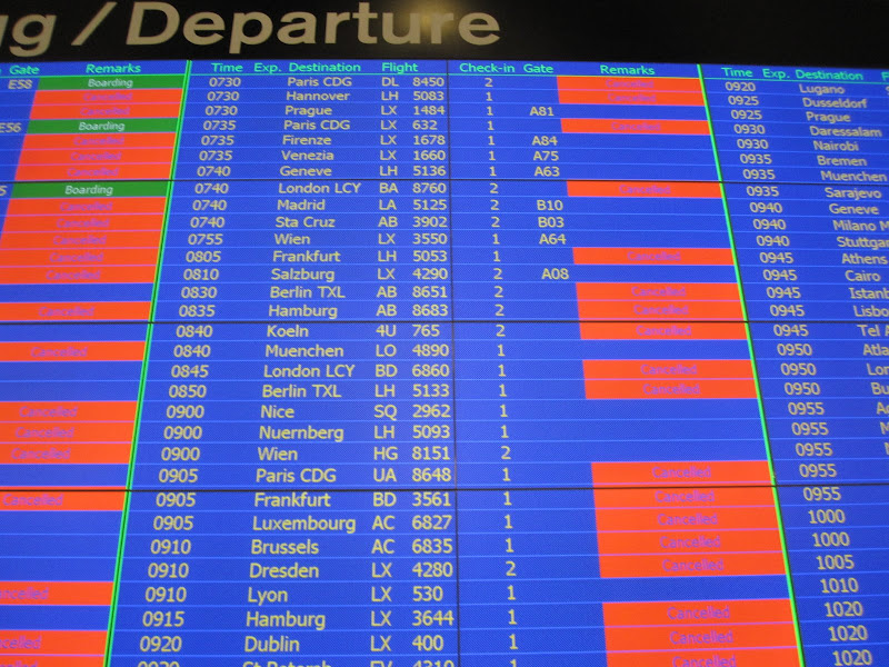 seara pe internet, şi am citit că se anulează zboruri, aşa că am sunat la compania aeriană şi au zis că zborul e programat. Buun. Printez cărţile de îmbarcare, şi la culcare.