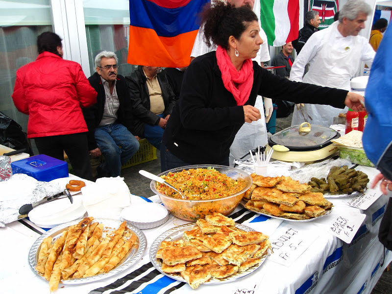la care am adăugat spontan 2 sarmale subţiri în foi de viţă de la kurzi şi un fel de clătite subţiri fripte cu brânză de la Armeni.