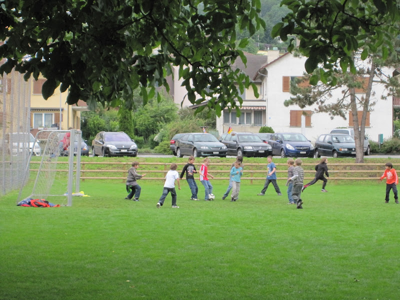 Afară, în replică la sala de vizionare fotbalistică, generaţiile viitoare abordau latura practică a fenomenului: