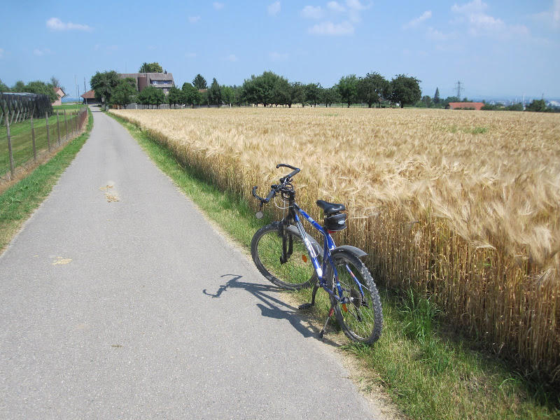 Am luat dar bicicleta şi dă-i, cale de vreo 6km până la lac. N-am făcut poze pe drum, deşi mi-a venit să, dar aveam un program sportiv strict de respectat (la 4 începea meciul, era deja aproape 2 când am pornit).