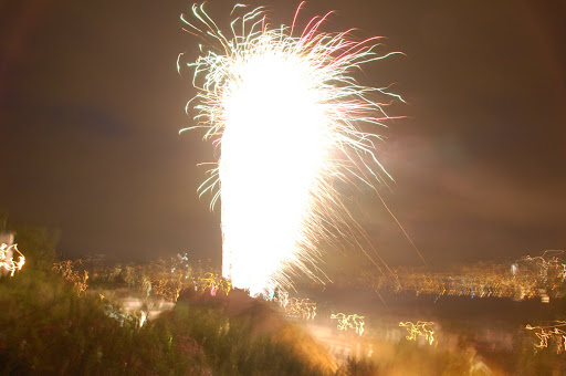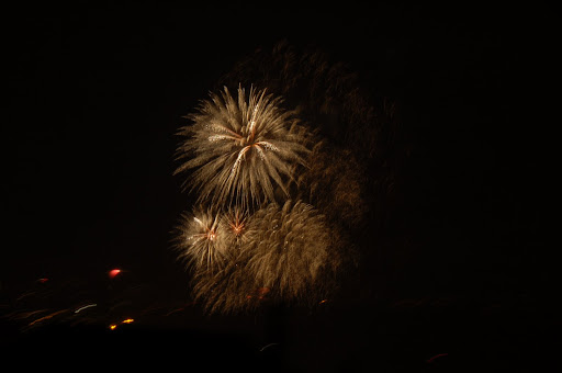 Tresar când se puşcă în apropiere, dar artificiile sunt mici, chiar dacă zgomotoase. Las expunerea aparatului lungă, să prind mai multe, cu riscul de a avea o imagine mai tremurată. Iată.