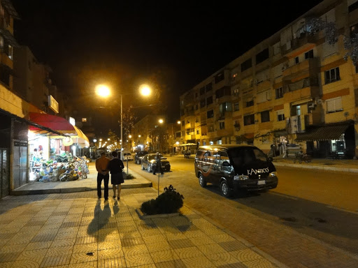 cu oameni îmbrăcaţi frumos plimbându-se – o iau şi eu pe-acolo. Ajung într-un cartier cu baruri şi restaurante, dar nu găsesc ce caut. Lonely Planeta zice de un restaurant numit „Gheg i Tosk”, unde se serveşte mâncare tradiţională albaneză din cele două zone. Întreb 2 persoane, „ju lutem, ku është restaurant Gheg i Tosk?” nu ştiu nici unii. Ultimul nene încearcă să afle mai multe amănunte, în albaneză, la care sunt nevoit să spun „pas”. Până la urmă îmi vine ideea s-o întreb pe Lil’ Jane, şi da, telefonul găseşte harta, şi localul. GPS-ul merge în Shkodra, Albania, fără nici o problemă. Mai e de mers până la restaurant, e în partea cealaltă, trec pe lângă multe baruri „sportive” cu plasme cu meciuri – acum înţeleg, sunt în majoritate sponsorizate de case de pariuri.