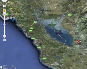 Mănânc un păstrăv întreg, cu legume la grătar, cu un sos negru care arată foarte rău şi are gust foarte bun. Până vine mâncarea, în timp ce consum un ceai de trëndafir am timp să citesc în Lonely Planet, să văd ce fac de-aici încolo. Planul e să iau un autobuz până la Ulcinj, dincolo de graniţa cu Muntenegru, şi-apoi în sus pe coastă, cumva. Doar că… ochii îmi cad pe titlul „Lacul Koman”. Un lac de acumulare în munţii „din inima Albaniei”, de o frumuseţe sălbatică – poate fi traversat cu un feribot. Hmmm…. hmm… se aprind beculeţe.