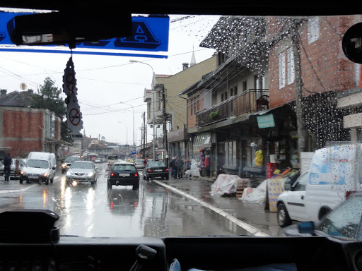 Până să ajungem la destinaţia intermediară, reuşesc să memorez în sfârşit numele oraşului – Gjakovë (pronunţat „Giakova” în albaneză). Din ce-mi pot da seama prin ploaie,