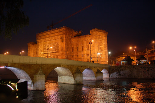 până la casa otomană veche de peste râu, de unde se vedea frumos biblioteca naţională în reconstrucţie (a ars în război împreună cu mii de cărţi de neînlocuit).