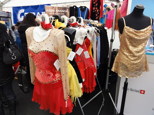 Înainte de a intra în sală mă abat pe la cortul de alături, unde am ocazia să văd expus ”echipamentul” de patinaj artistic pentru prima dată de aproape. Atât îmbrăcămintea,