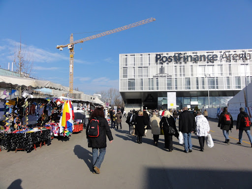 se pare că un campionat european de patinaj nu e de fotbal. Sau or fi deja toți la fața locului? Proba liberă feminin a început la 1, e 2 fără 5 când ajung în fața arenei Postfinance, ”sala polivalenta”.
