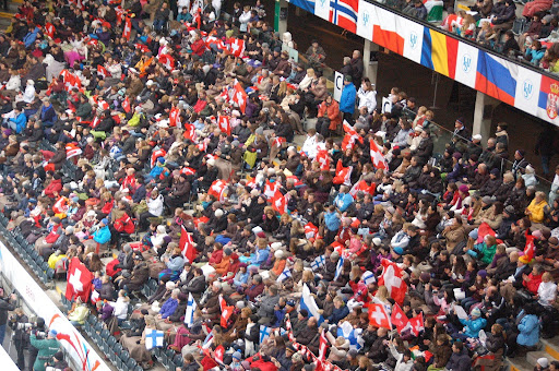 La faţa locului însă, se simte „sportul”. N-am avut deloc impresia că particip la un spectacol de revistă, ci la o întrecere sportivă, cu efort, sudoare şi durere înnobilatoare, cu toată gama de emoţii şi adrenalină dată doar de sport (şi nu de showurile „profesioniste”, după părerea mea). Împreună cu cei zece mii de spectatori din bătrânul congelator „Postfinance Arena” am perceput muzica şi paietele doar ca un adaos la spectacol, fără a fi însă supărător, fără a distrage atenţia de la esenţial – eram la o întrecere sportivă.