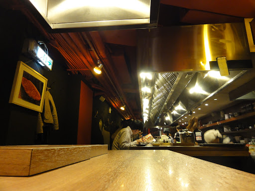iar la telefon A. îmi zice că şi ei sunt în zonă, într-un bar două străzi mai încolo. Care e destul de departe în acest oraş mare, dar într-un sfert de oră ajung. Barul de sushi e cochet,