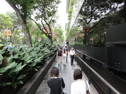 Drumul a continuat în sus pe Orchard Road, strada livezii, pe lângă mall-uri, și-n dreapta,