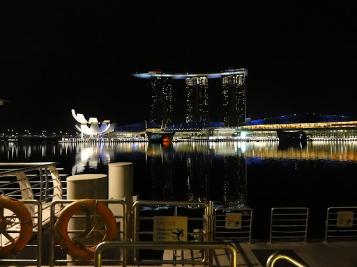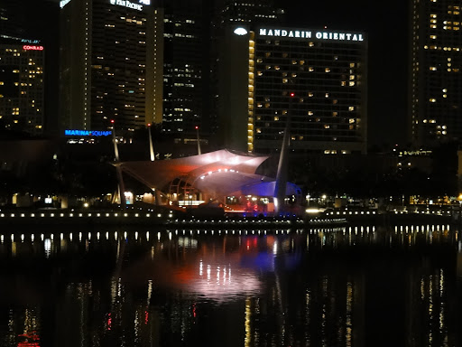 Întrebarea a rămas deschisă. Din bar am luat-o înapoi spre faleza „mare”, cu gândul să dăm o tură până la clădirea celebră cu acoperiş în formă de barcă. Înainte de asta, G. ne-a dus la Leu („aţi văzut leul?” „ce leu?” „păi simbolul oraşului Singapore, zis şi „Lion City”.” „Nu, unde e?”)