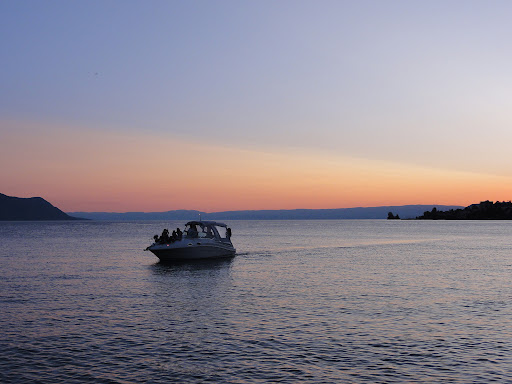 În partea cealaltă se desfășura spectacolul Orei Albastre şi al luminilor-orașului-pe-lac-cu-munții-în-spate.