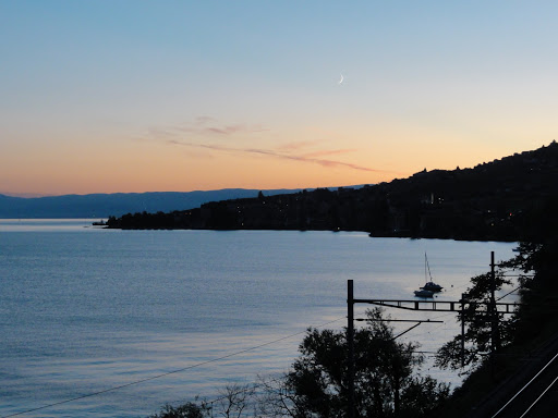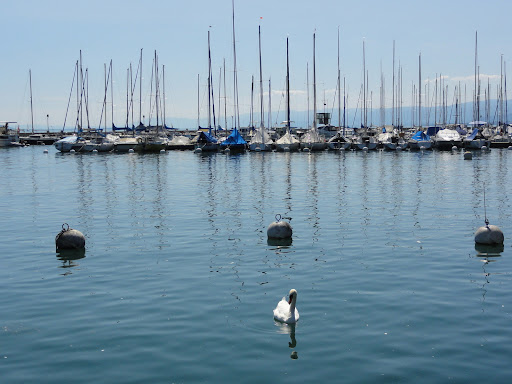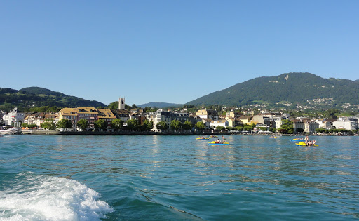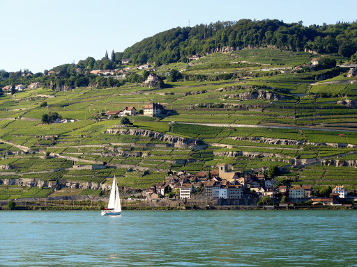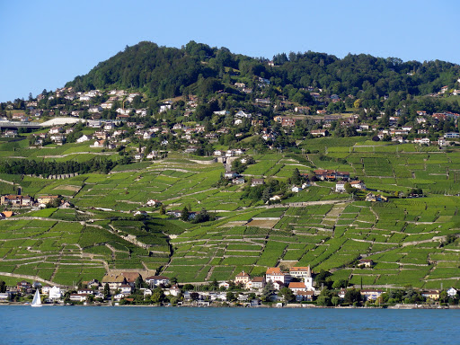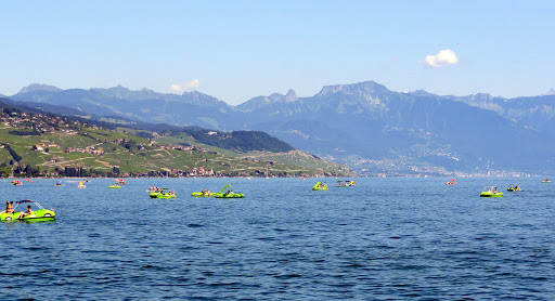Până ajungem la Ouchy se face ora patru. Găsim loc de parcare chiar lângă port, dar cu vreo 10 minute prea târziu – în timp ce ne apropiem de doc vedem două vapoare cum pleacă – primul era ”al nostru”. Întrebăm la ghișeu, următorul e abia la 7 fără 20! Ce ne facem? Luăm bilete, și până una alta mergem până la faleză, să ne uităm la ce ne așteaptă: viile din Lavaux.