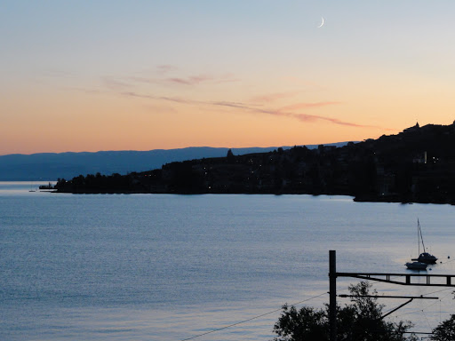 Abia înainte să plecăm de tot observ că a răsărit și luna, subtțire ca un fir de ață, și pe bune dacă știu ce poză să aleg pentru final între asta