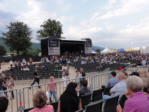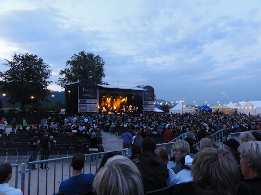Evenimentul va avea loc la Kestenholz, open air, undeva în mijlocul pustiei argoviene, aproape însă de unde stă R.; ca urmare o voi culege de acasă. Plec târziu, evident, trafic, stres, oare ajungem la timp? Ar fi enervant să nu prindem de la început, dar – ieșim de pe autostrada care se anunțase plină și pe drumuri ocolite ajungem cu 10 minute înainte de începerea concertului. Parcăm în câmpul special amenajat și indicat de cadeți în veste fosforescente, iar când ajungem la scenă constatăm că ne-am grăbit degeaba: lumea e încă la mese, la mici și bere.