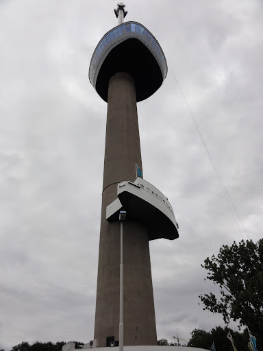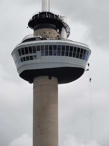 Portul Rotterdam e cel mai mare din Europa, întins pe 40km de-a lungul estuarului râului Meuse (singurul european alături de Le Havre care ”primește” vapoare de tonaj foarte mare). Nici o șansă să-l vedem tot – dar ne-ar plăcea să vedem portul vechi, Delft. După experiența cu parcarea din Breda o rugăm pe Jane să ne ducă direct la o parcare acoperită, în apropiere de Euromast – priveliștea de sus ne va lămuri cum stă treaba cu orașul. În drum spre Euromast trecem pe lângă ce cred că face parte din portul vechi, acum cu 2 echipaje ale poliției.