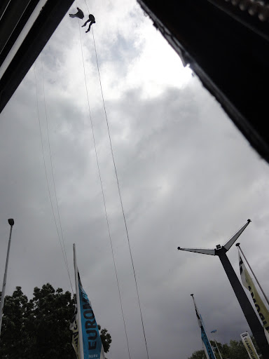 Euromastul nu pare foarte înalt, până ajungi sub el.