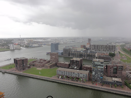 (Rotterdamul a fost bombardat complet în războiul 2, așa că tot ce e aici e construit după), dar portul e totuși impresionant, cu ploaie cu tot.