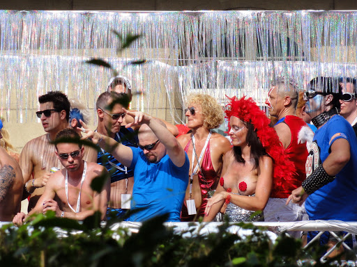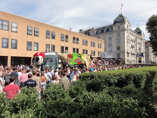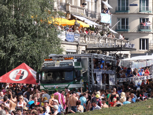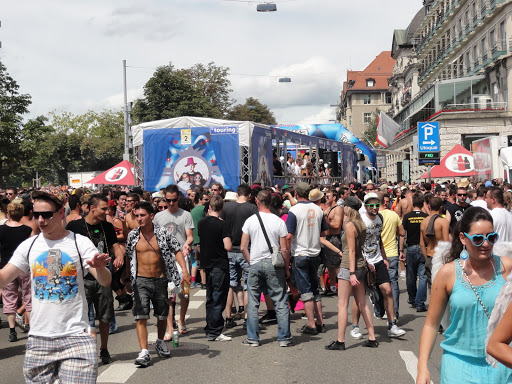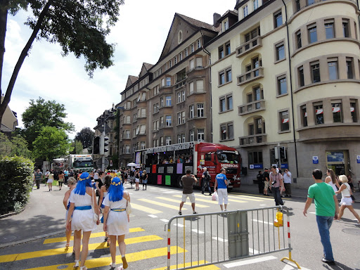 mă gândesc la fistichiii aceştia. Când îi vezi, ai zice să sunt puşi pe scandal, dar nu – Street Parade este sărbătoarea păcii, diversităţii şi mai ales a toleranţei. Oamenii se îmbracă fistichiu pe de o parte tocmai pentru a sublinia acest aspect, pe de alta pentru că mişcarea a înflorit din muzica electronică, unde plasticul şi culorile vii sunt la mare preţ.