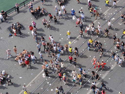 Am o secundă de ezitare – pe unde s-o iau, pe stradă liniştită, sau prin mijlocul evenimentelor?