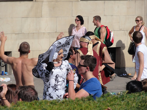 Am parcat maşina lângă lac într-un loc liniştit şi am luat-o pe bulevard spre Bellevue – bănuiam că voi da peste ceva interesant, şi într-adevăr, am găsit TIRurile în pregătiri pentru defilare, cu primii costumaţi prin preajmă.