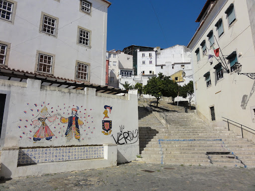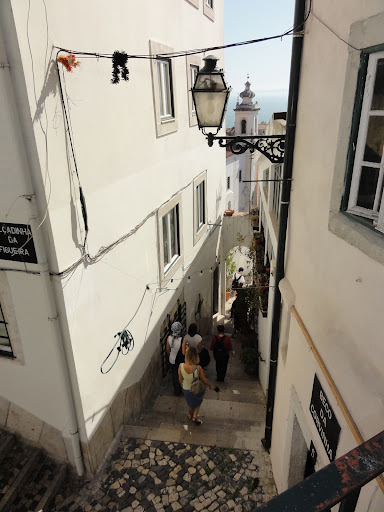 Hopa – și aici ajungem la itinerariul turistic: Alfama e cel mai reprezentativ cartier al Lisabonei care își păstrează caracteristicile dinainte de marele cutremur din 1755 – cum ziceam în episodul trecut, islamiștii de aici nu aveau lumânări aprinse în zi de sărbătoare creștină, deci n-au luat foc, iar fiind împinși sus pe deal au scăpat și de tsunamic.