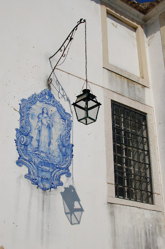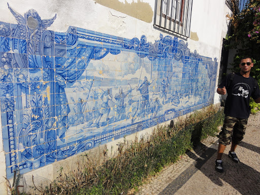 în fața unui tablou pe faianță unde e înfățișată cucerirea castelului maur de către sportugheji.