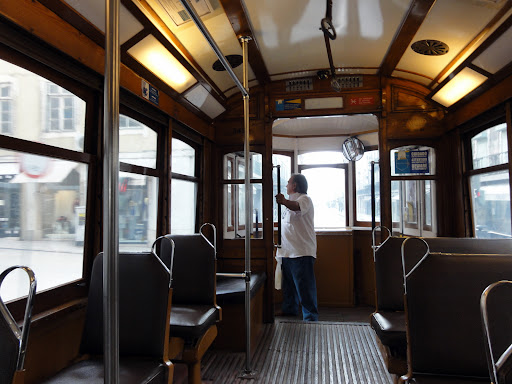 Îl durea tramvaiul să ne ducă şi pe noi?!? Îi fac o poză ostentativă de aproape, cu intenţia să pun pe blog: aşa arată un portughez nesimţit: