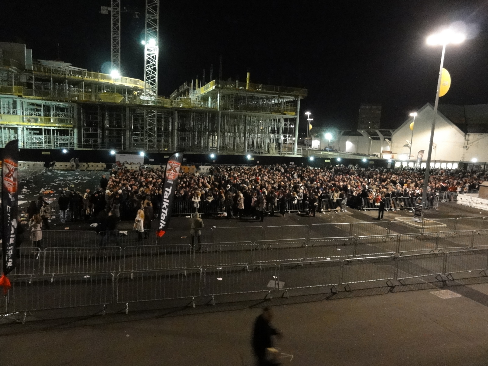 Ieșind de pe stadion vedem afară o mulțime de oameni așteptând la ce păreau niște grilaje. ”Ce-i cu ăștia, sunt și ei la meci?!” ne întrebăm absurd. La o privire mai atentă vedem steagurile cu X – așteaptă la X-Factor! Probabil e finala, în sala aceea polivalentă din spate. Uuaah, pe frigu’ ăsta! E drept, la cât sunt de înghesuiți, probabil nici nu le e frig.