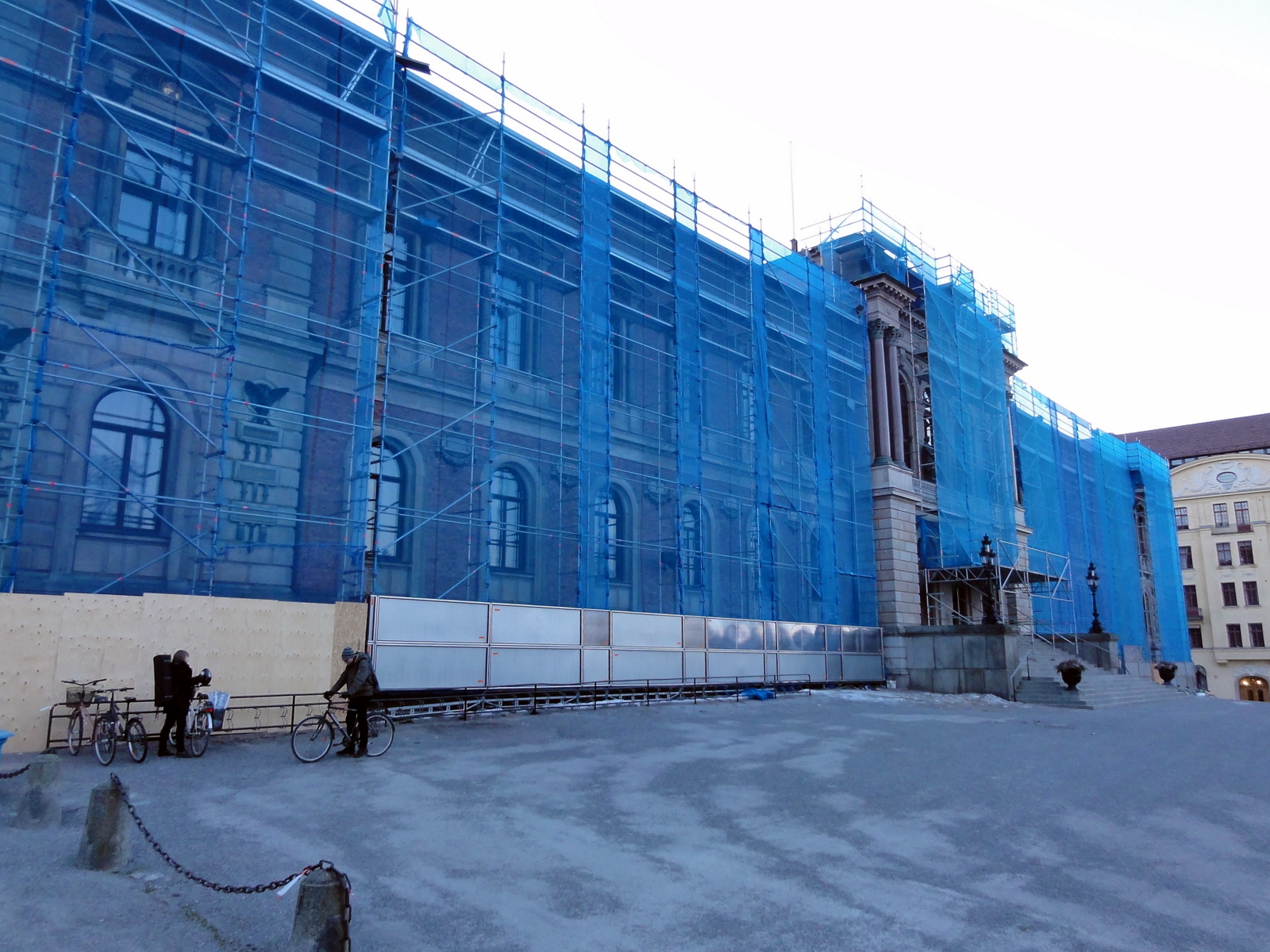 întins spre prima țintă înainte să se lase întunericiul – universitatea, cea mai veche din Scandinavia și una din cele mai vechi din Europa, 1452 (cu 25 de ani înainte de lupta de la Podul Înalt). Fiind atât de veche, nu e de mirare că e în renovare și nu văd din ea mai nimica.