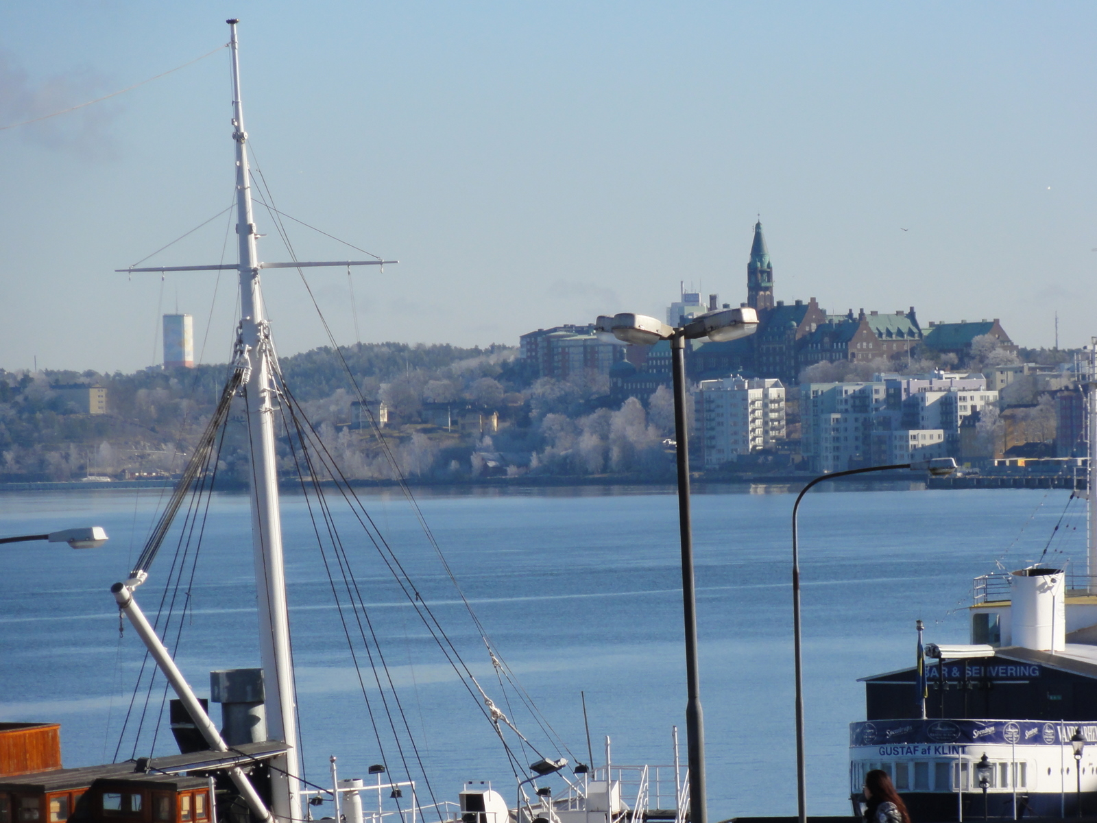 cu un ”ha!” urc, iau bagajul, întreb care e metroul cel mai apropiat, zice Slussen, șilarevedere, trtrtrtr cu bagajul spre Slussen. Nu înainte de a face poza asta la vapor, între timp s-a ridicat ceața.
