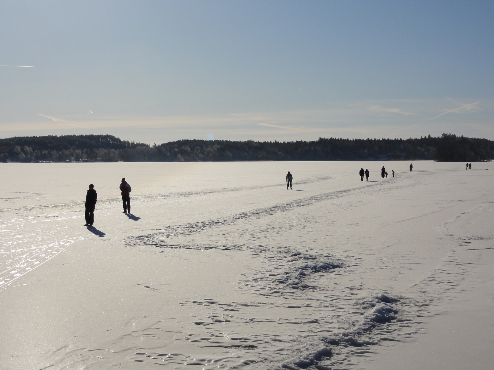 Aproape de mal mă întâlnesc cu doi părinți și trei copii, iar copiii îmi răspund la întrebarea dacă trebuie să stau pe drum ca să fiu în siguranță – au luat-o frumos drept înainte pe gheață, ba parcă s-au oprit și lângă ceva ce arată a copcă: