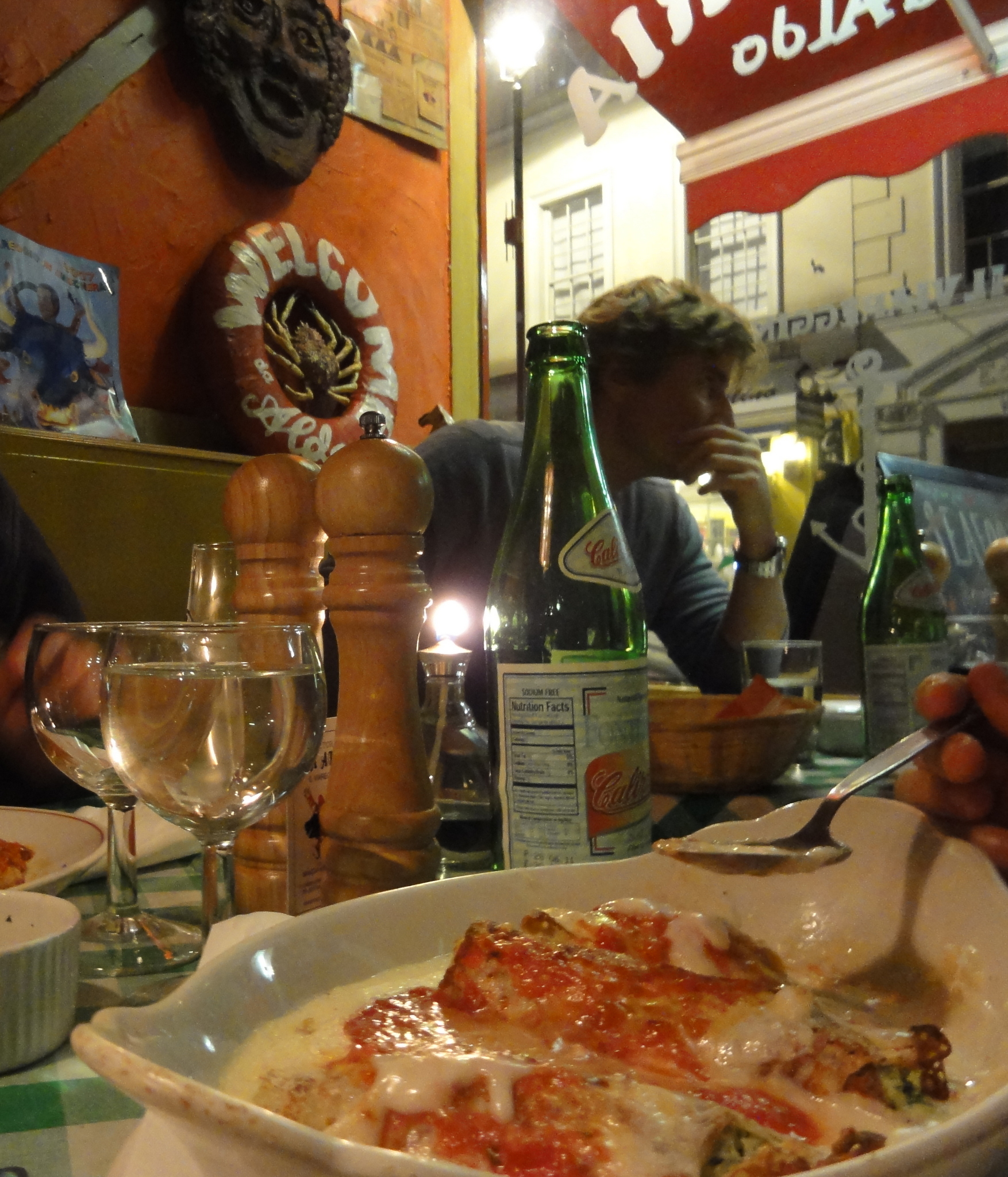 Pentru a pune burta la cale întrebasem la hostel pe băiatul de la recepţie, un roşcovan din Portland („eheei, tocmai din partea cealaltă!” „…ştii unde-i Portland? Majoritatea englejilor nu ştiu”. N-am intrat în amănunte, dar era suficient dacă ziceam Clyde Drexler şi Portland Trailblazers) şi a zis că mâncărimi mai puţin turistice sunt pe Greek Street şi Dean Street. Strada cea grecească e mai aproape de Piccadilly, aşa că într-acolo mergem, găsim un italian (începem uşor, aşa) pe nume Aldo, bună mâncarea, cam multă (facem greşeala să luăm un meniu, ajungea un fel). Plăcută ca atmosfera la trattoria de familie.