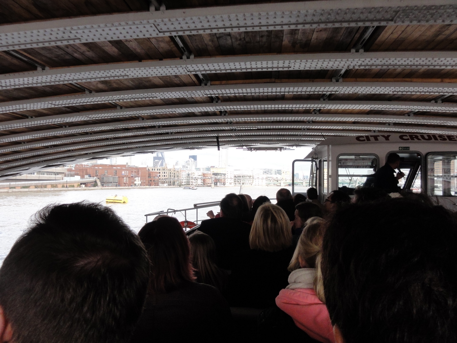 De curând s-a dat drumul la croaziere pe Tamisa, zice ghidul lui M. – chiar mă mir că nu erau de mai demult, dar într-adevăr parcă nu-mi aduc aminte să fi auzit dățile trecute că se poate. Păi hai. Biletul e inclus în cel de autobuz turistic, merită. Coborâm la podul Westminster jos la apă, chiar vizavi de marea roată,