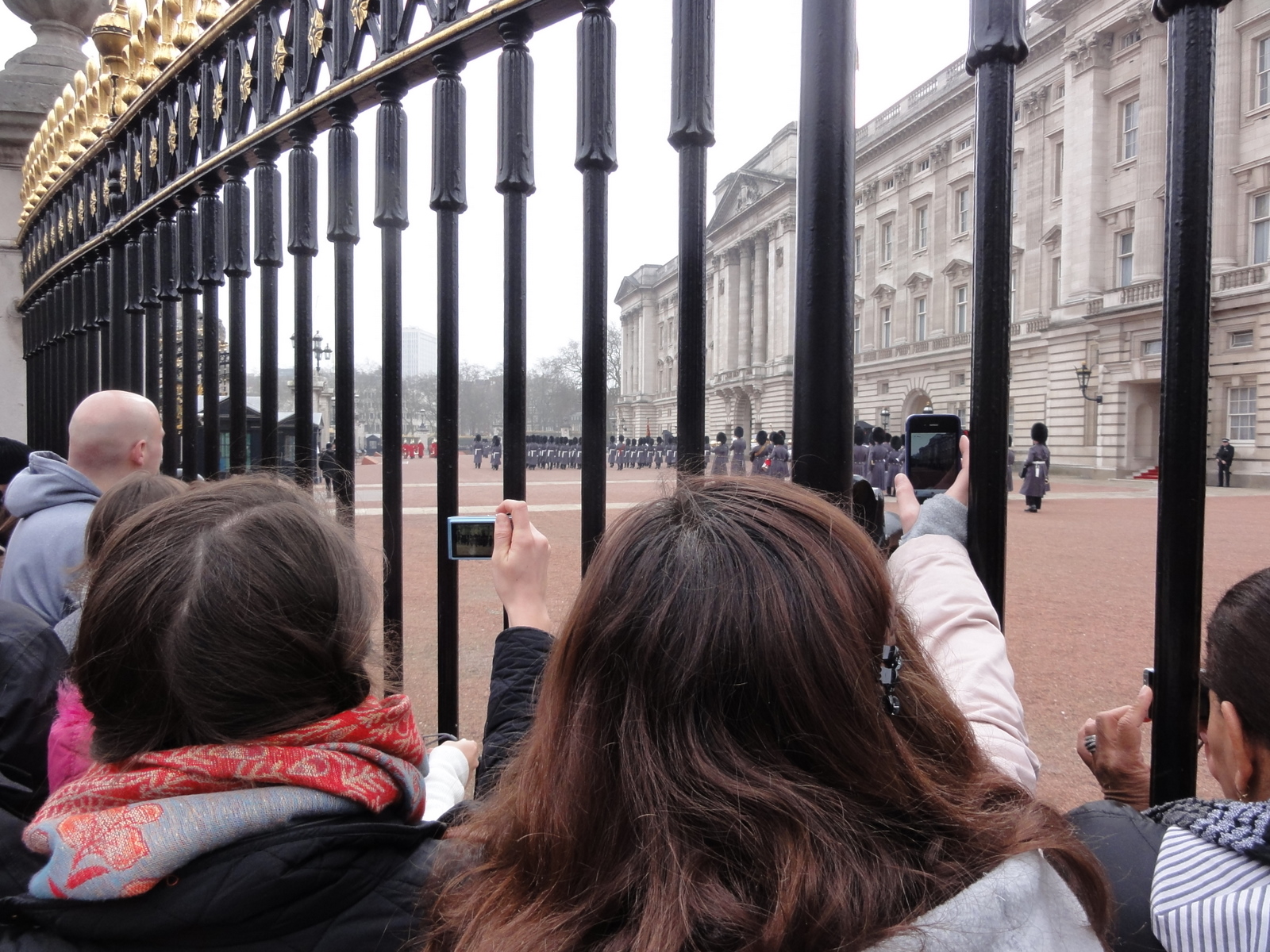 Garda la Palatul Buckingham se schimbă la ora 11. Ajungem cu foarte puțin timp înainte, dar sperăm că azi fiind zi de lucru, în extra-sezon, nu va fi atâta lume. Da de unde, e plin.