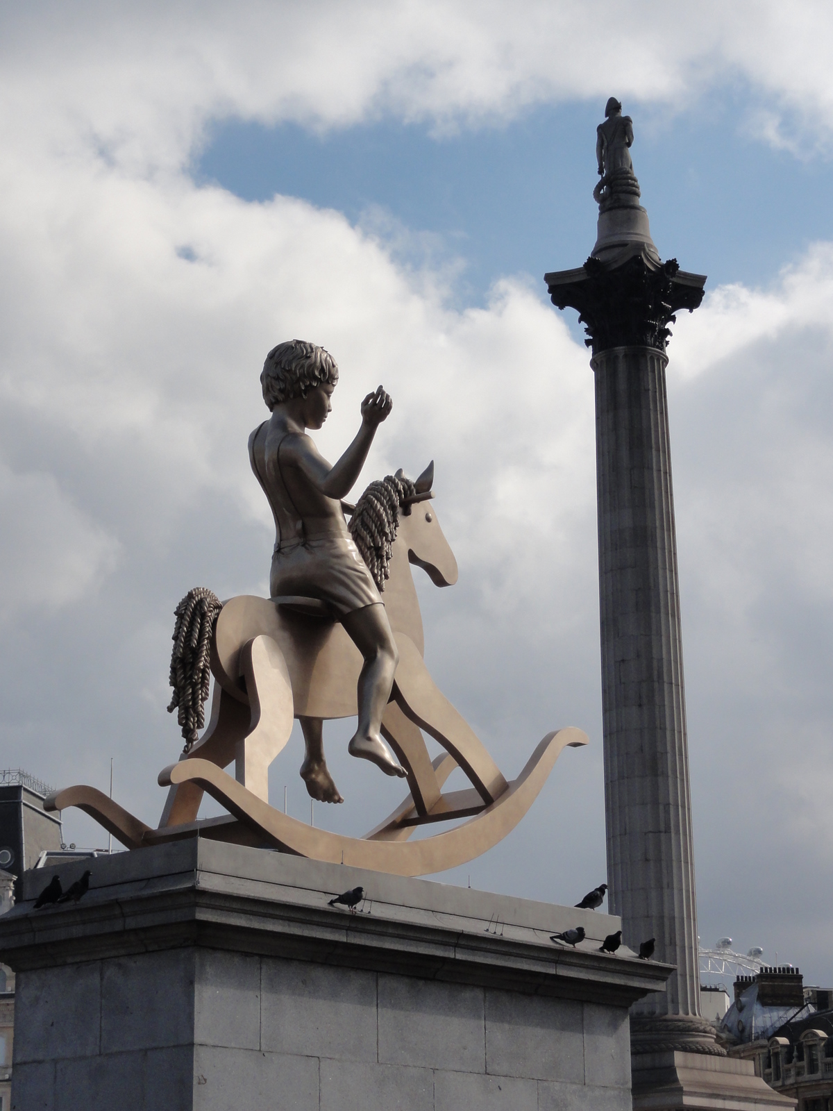 Un amănunt de care nu știam, al patrulea piedestal din Trafalgar nu are o statuie a lui, ci găzruiește opere de artă modernă care se schimbă periodic. Acum a fost rândul acestui călăreț.